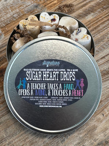 Teacher Sugar Heart Drops Sugar Cubes with Flavor & Real Flowers - Vanilla Lemon Cinnamon Butterfly Pea Rose Orange